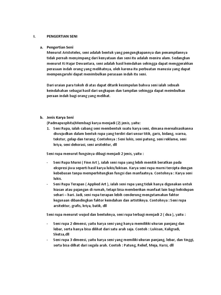 Berkarya Seni Rupa Dengan Memodifikasi Objek Seni Budaya Kelas Xi 1 Berkesenian from 1.bp.blogspot.com Seni rupa ini dibagi menjadi dua, yaitu seni rupa 2 dimensi dan seni rupa 3 dimensi. Tepatnya, karya seni ini hanya memiliki panjang dan lebar saja. Seni rupa ini hanya bisa dilihat dari sisi depan saja contohnya seperti lukisan, seni batik dan seni ilustrasi.; Untuk mengetahui lebih detail, berikut beberapa. Ukuran yang tidak memiliki karya seni rupa tiga dimensi adalah a lebar b pajang c diagonal d tinggi. Sedangkan karya seni rupa tiga dimensi adalah karya seni rupa yang dapat dinikmati dari berbagai sudut pandang, atau karya seni rupa yang memiliki isi ketebalan, lebar, dan tinggi. Gelap terang di dalam karya seni rupa 2 dimensi memiliki beberapa fungsi, antara lain: Berbeda dengan 3d yang memiliki 3 ukuran yaitu panjang, lebar, dan tinggi.